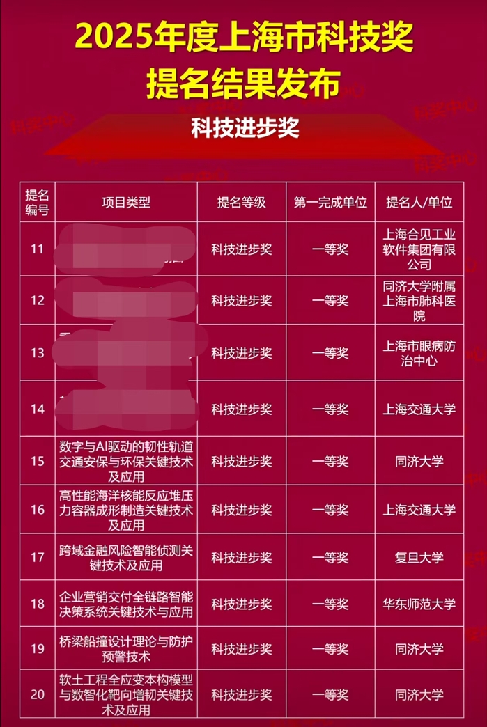 团队牵头项目《数字与AI驱动的韧性轨道交通安保与环保关键技及应用》获上海市科技进步一等奖提名。